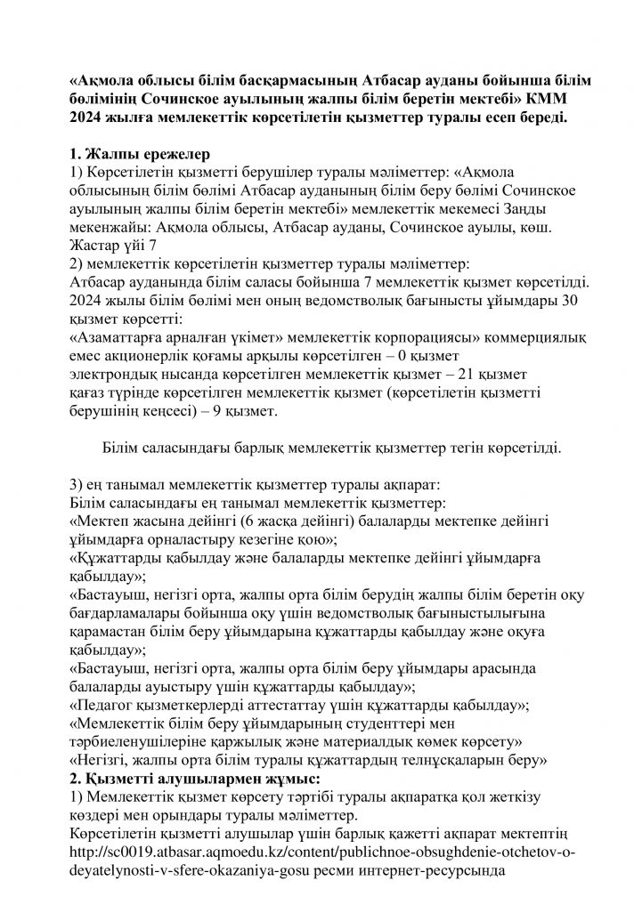 Коммунальное государственное учреждение "Общеобразовательная школа села Сочинское отдела образования по Атбасарскому району управления образования Акмолинской области"