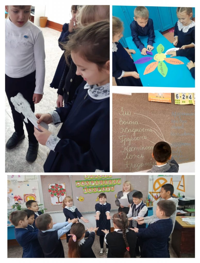 "Қатыгездік пен зорлық-зомбылықсыз балалық шақ" ақпараттық компаниясын өткізу жөніндегі іс-шаралар жоспарына сәйкес 14 қарашада 1-4 сыныптар - "Мейірімділікті сақтау заңдары"; 5-9 сыныптар – "Зорлық – зомбылыққа қарсы жақсылық"; 10-11 сыныптар -...