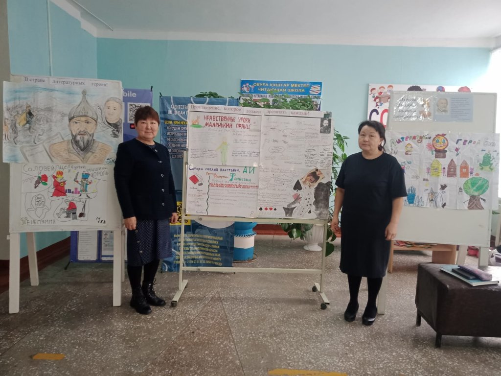 Орыс тілі мен әдебиеті мұғалімдерінің онкүндігінің басталуымен мектеп фойесінде А. Е. Әбілқасымова мен К. Ш. Джақыпова ұстаздарымен стенд рәсімделді