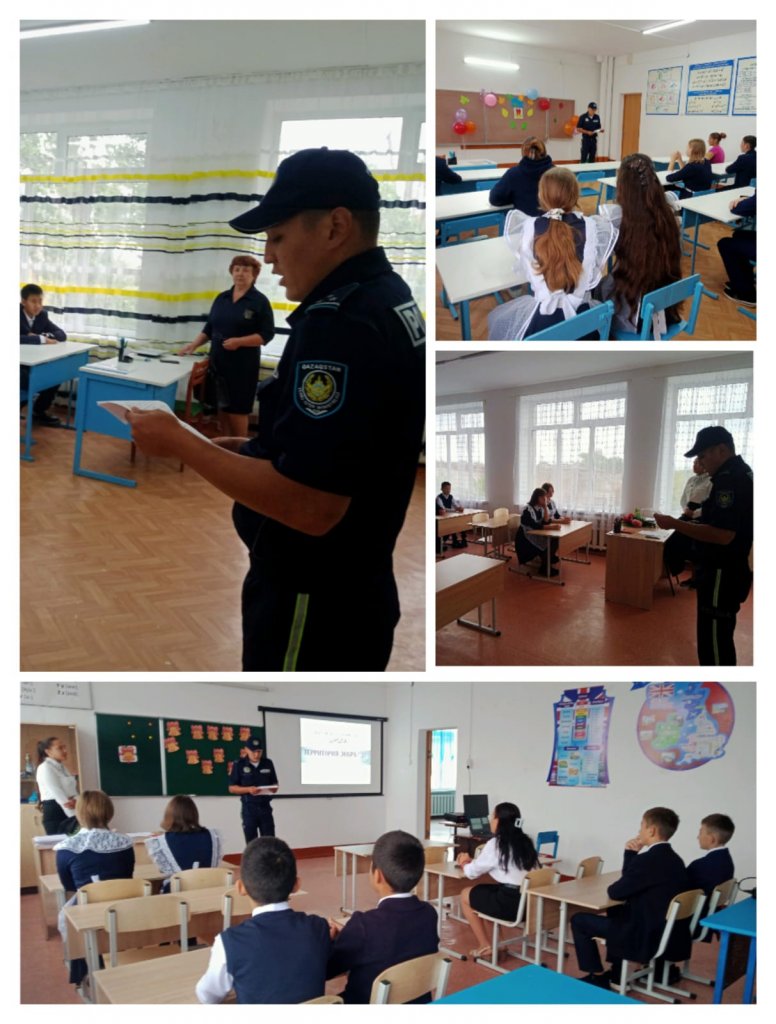 01.09.2023 жылы Атбасар ауданы ҰҚЖ қызметінің инспекторы полиция аға лейтенанты Сайдалинов Арсен Қайдарұлы Сочинское ауылының жалпы білім беретін мектебінің 8-11 сынып оқушыларымен "Жасөспірімдер ортасындағы құқық бұзушылық пен қылмыстың алдын алу" (ЖҚЕ, балалар...