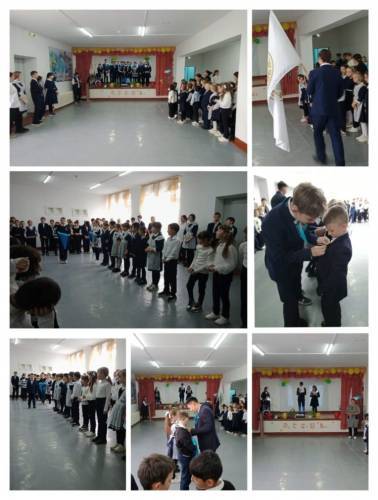 Галстук байлау және төсбелгілерді кию салтанатты рәсімінен кейін жас "жасұландықтар" мен "жасқырандықтар" ант беріп, ұйымның әнұранын орындады, осылайша ұйымның толыққанды мүшелері болды. Құттықтау сөздерін мектеп директоры Л. О. Бовдуева айтты. Іс-шара концерттік бағдарламамен жалғасты.